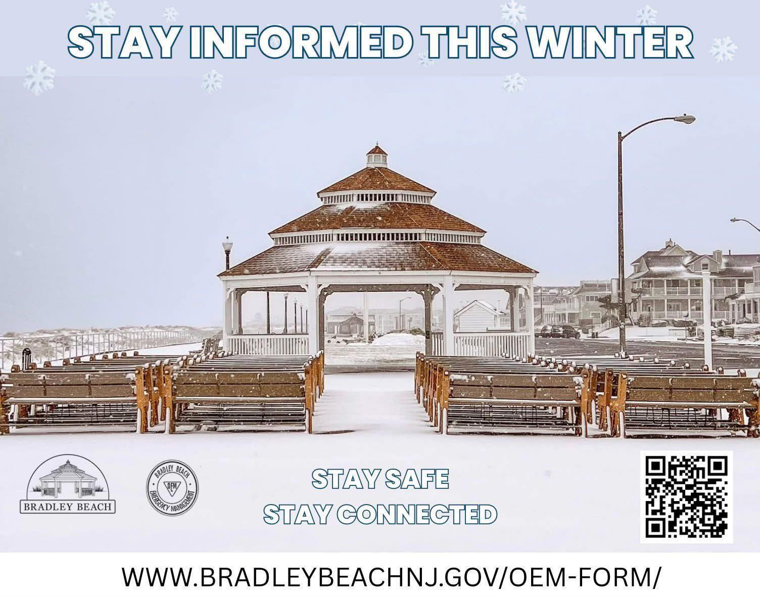 Upon activation of the shelter(s) the Bradley Beach OEM will notify residents through the Borough website, telephone notification system, mobile public address system, electronic billboard located outside of Borough Hall (municipal complex), radio, television and newspaper media.